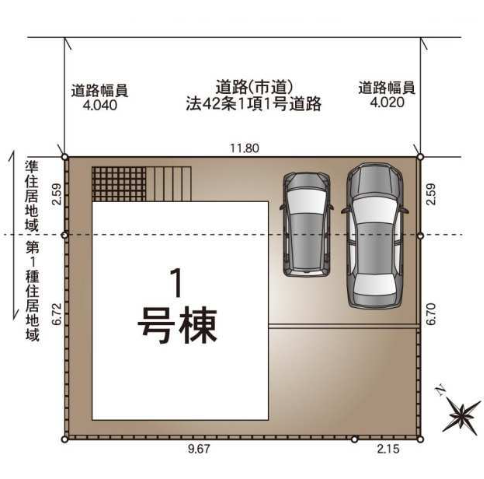 用途地域1種住居 準住居接道状況北東4.0m 公道 接面11.8m